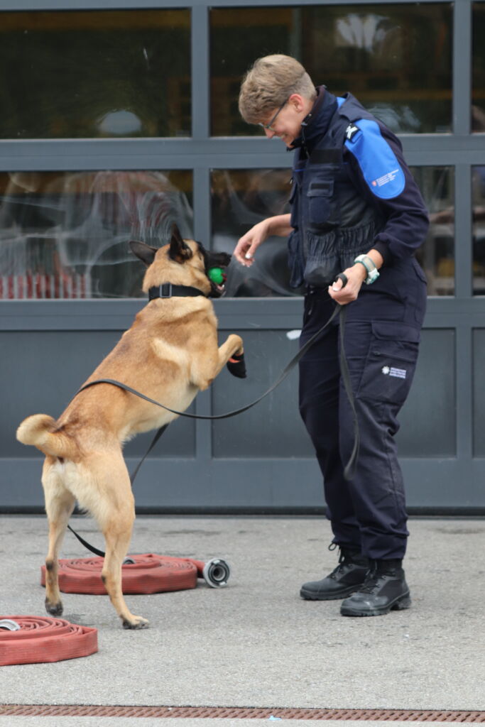 Seit 2012 begleiten mich die Hunde auch im Berufsalltag. Als Diensthundeführerin und Instruktorin der Kantonspolizei Schwyz befasse ich mich mit vielfältigen Sparten der Hundeausbildung. Ich durfte Erfahrungen in den Bereichen Schutzdienst, Unterordnung & Führigkeit, Flächensuche nach Personen, Suche nach Gegenständen, klassische Fährtenarbeit, Suche nach Betäubungsmitteln und Mantrailing sammeln. Ich blicke gerne über den Tellerrand und stehe auch mal zum Plausch auf dem Agi-Platz, bin am Tricks einüben oder nehme an Seminaren zum Thema Hund im Alltag teil. Ständige Weiterbildung ist für mich nicht nur Pflicht. Als Teamleiterin gebe ich mein Wissen gerne an andere Hundeführer weiter. Dabei versuche ich, auf das Wesen des Hundes, aber auch auf die Eigenschaften der Hundeführer einzugehen. Jedes Team ist einzigartig!